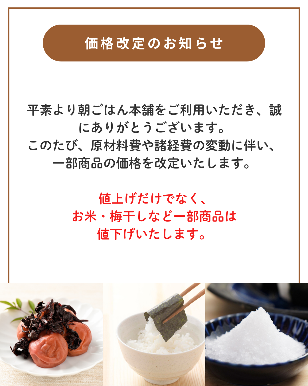 価格改定のお知らせ(※一部商品は値下げいたします)