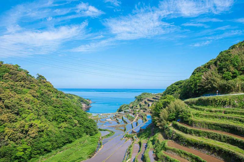 佐賀県の美しい棚田地帯で育てられた「上場産コシヒカリ」は、日本の棚田百選にも選ばれた大浦や浜野浦の棚田を有する上場台地の恵みです。上場台地は玄界灘に面しており、昼間は対馬海流の影響を受け温暖ですが、反面日が沈むと冷涼な気温となります。この寒暖差がご飯の甘みを最大限に引き出しています。