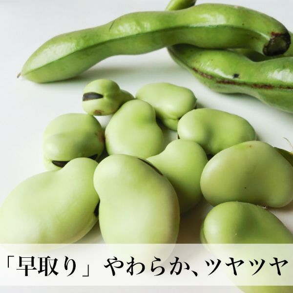 早取り空豆なので、豆やさやは少し小さめですが、皮がやわらかく、むいたら豆がつやつや!