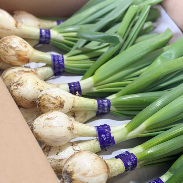 2月頃の気温が低い時期に収穫される、葉付きのサラダ玉ねぎです 玉ねぎの葉まで食べられます。