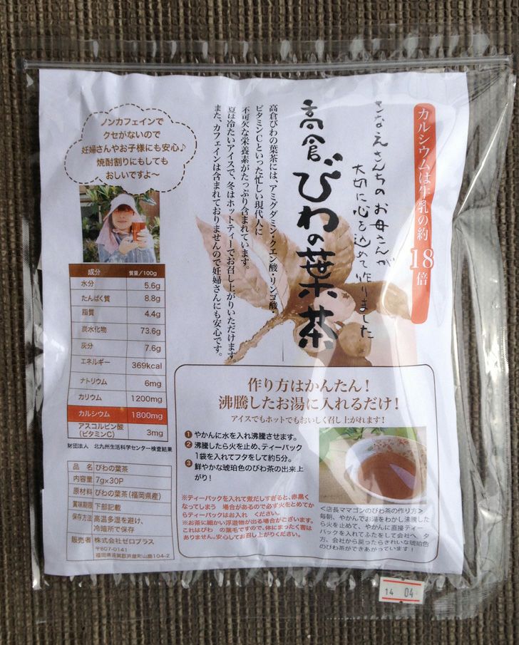 福岡県有数のびわの産地、福岡県岡垣町で栽培しているびわの葉100%。化学肥料や除草剤は一切使わずに、1億年前の貝化石を有機肥料に利用した、びわ農家・早苗さんのびわの葉茶です。びわ茶には、さまざまな栄養素が含まれていることで知られていますが、 なかでも早苗さんのびわ茶に含まれているカルシウムは牛乳のなんと18倍!