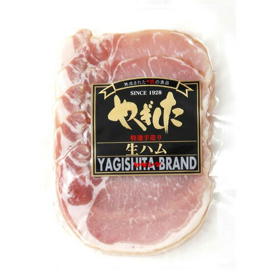 厳選された国産豚のロース肉をヤギシタ独自の塩漬熟成方法を用い、低温燻煙で仕上げた香り豊かな高級特選手作り生ハム。