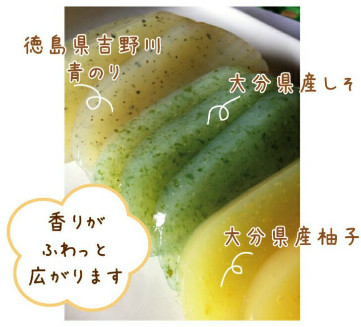 柚子、しそ、 青のり。3種類の味が楽しめます。