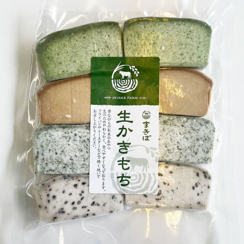 生かきもちは寒餅とも呼ばれ、短冊状に薄く切って自然乾燥させた昔ながらのお餅です。 福岡県産のもち米に黒砂糖やよもぎをお餅につきこんで、棒状の型に入れて寒風にあて、固めてからカットしています。