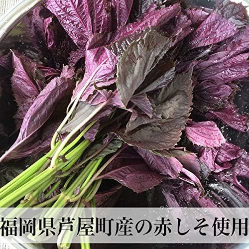 芦屋町産の赤しそのなかでも、香りが一段と高く、福岡で約50年以上にわたり高評価を得ているあたか農園の赤しそを使用。