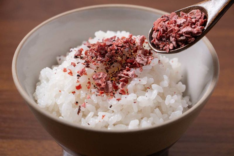 梅干しの風味をそのままに、梅干しのおいしさをギュッと凝縮。しその香りが際立つようにやや粗挽きに仕上げました。すっぱい梅好きな方に是非食べていただきたいふりかけです。