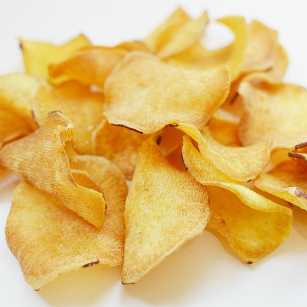 シンプルに塩味をつけた素材の風味を楽しむチップスは、サクサクカリカリで食感もよくそのまま食べるもよし、サラダにかけたり、肉や魚料理の食感のアクセントに使うのもおすすめです。