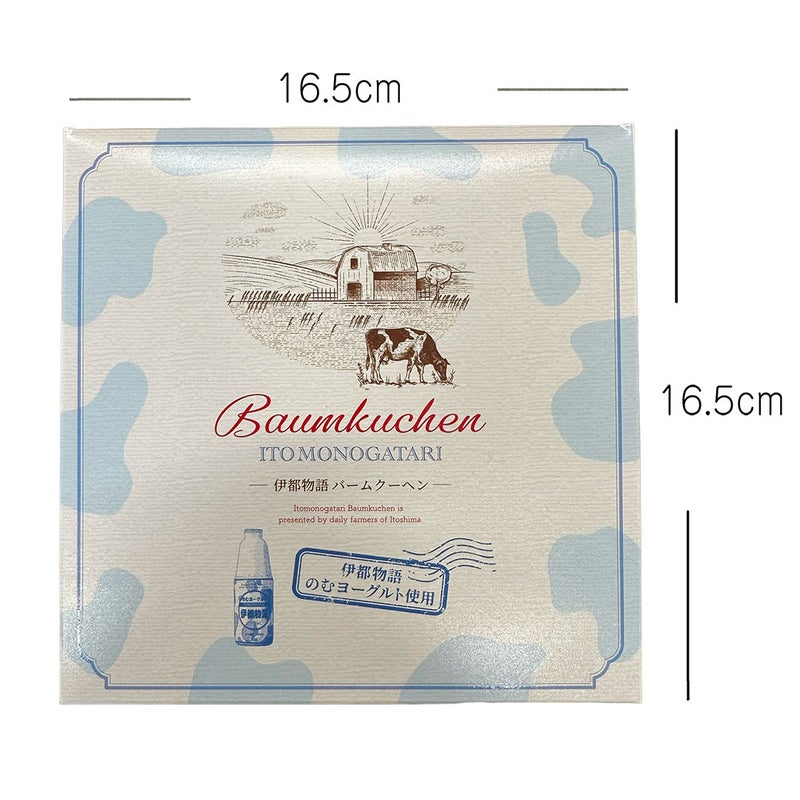九州で愛され続けている「のむヨーグルト伊都物語」の美味しさをとじこめたバウムクーヘンです。