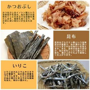 米ぬか(栽培期間中農薬不使用/福岡県産)、天日塩(沖縄県産)、山椒(福岡県産)、唐辛子(島根県産、山口県産)、昆布(北海道産)、干し椎茸(大分県産)、いりこ(大分県産)、かつおぶし(国産) |
