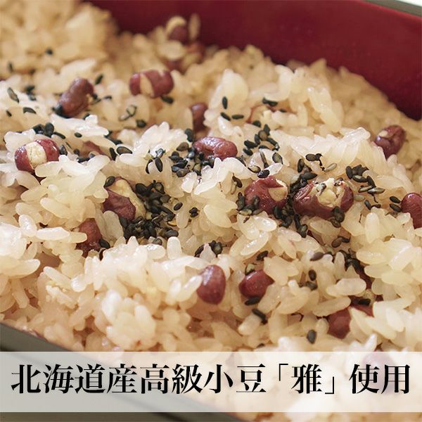 商品説明 北海道産高級小豆「雅」と福岡県産もち米を使用し、福岡県のおいしい水で作った冷凍のお赤飯です。