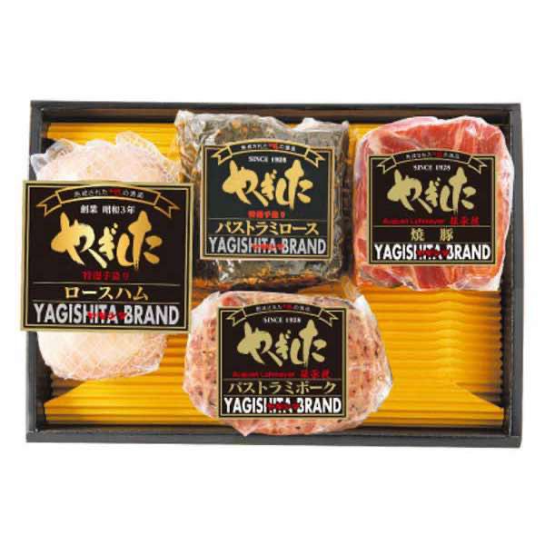 ヤギシタが誇る特選ハムシリーズの詰め合わせ。ヤギシタの特選シリーズ(ロースハム・焼豚・パストラミロース・パストラミポーク)を贅沢に詰め合わせました。